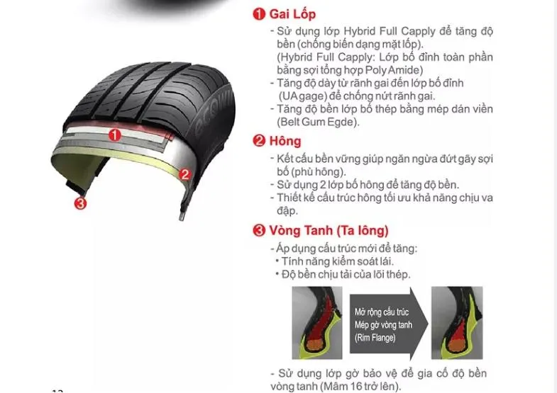 - Sử dụng lớp Hybrid Full Capply để tăng dộ bền (chống biến dạng mặt lốp).