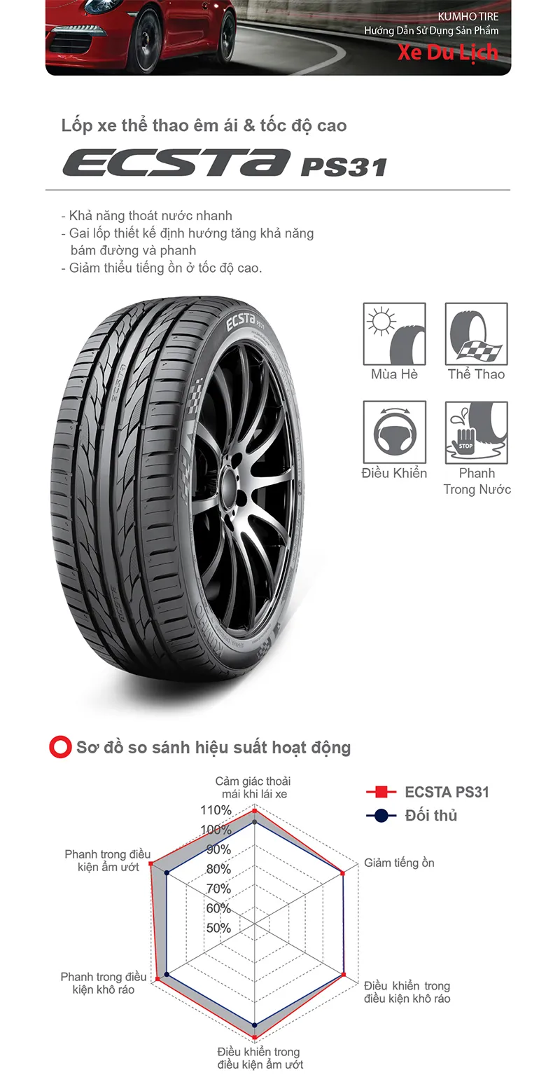 Vỏ lốp 195/55R15 85V PS31 KUMHO VIỆT NAM, vỏ lốp xe Lacetti max 1.8, vỏ lốp xe Ford Laser Ghia 1.8AT , vỏ lốp xe Mazda Premacy