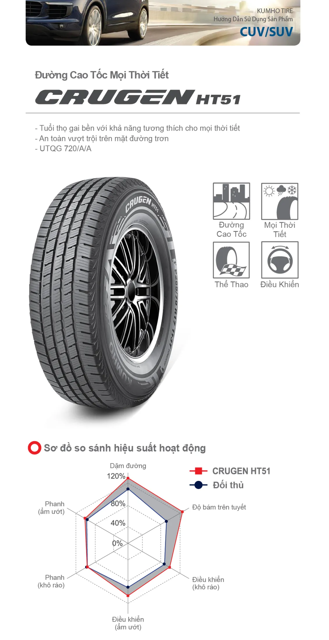 Vỏ lốp 265/60R18 110T HT51 ỏ lốp ô tô Chevrolet Colorado, Chevrolet Trailblazer, Ford Ranger Wildtrack, Lexus GX460, Mitsubishi Pajero, Mitsubishi Triton 2.4, Toyota Fortuner 2.7V, Land Cruiser Prado